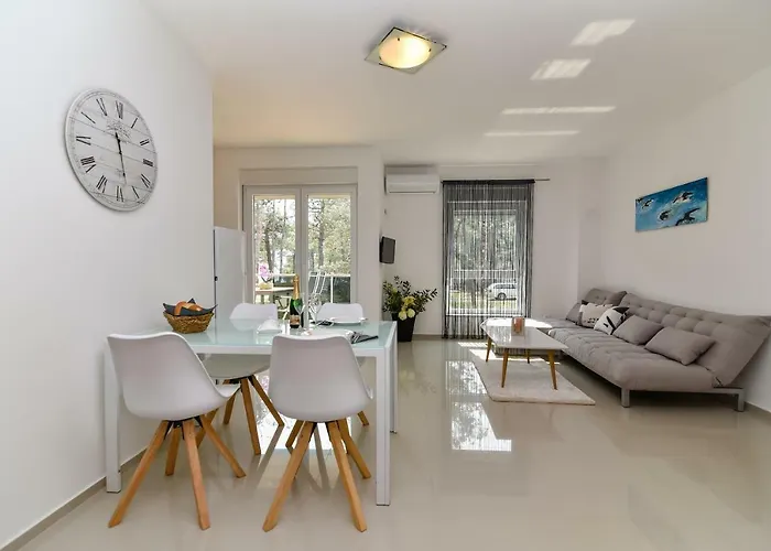 Denis Apartment Vir, situado a unos 2 km de la Plaza Jadro, ofrece Wi-Fi tanto para estancias de negocios como de ocio. Este apartamento frente a la playa también cuenta con una terraza con vistas al mar.